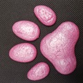 The assembled paw pads are 3" length x 2.5" width x 1/4" height.